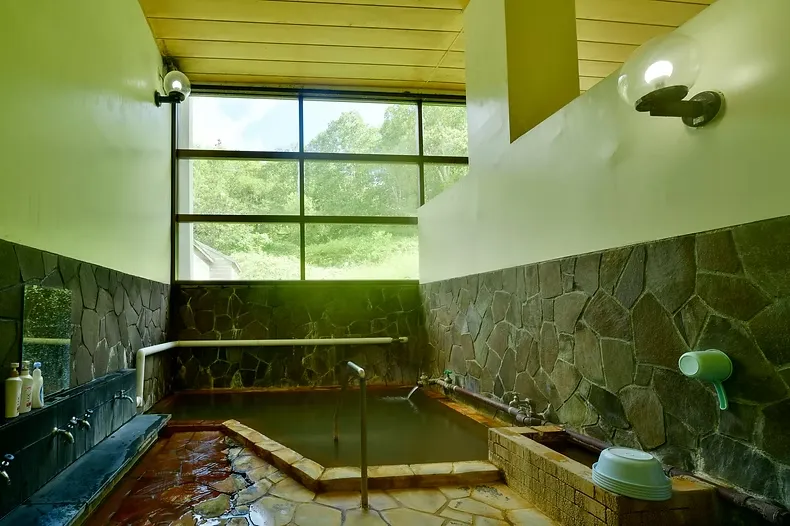 男女それぞれ一つずつのシンプルな浴槽が、登山の疲れを深く癒やします。